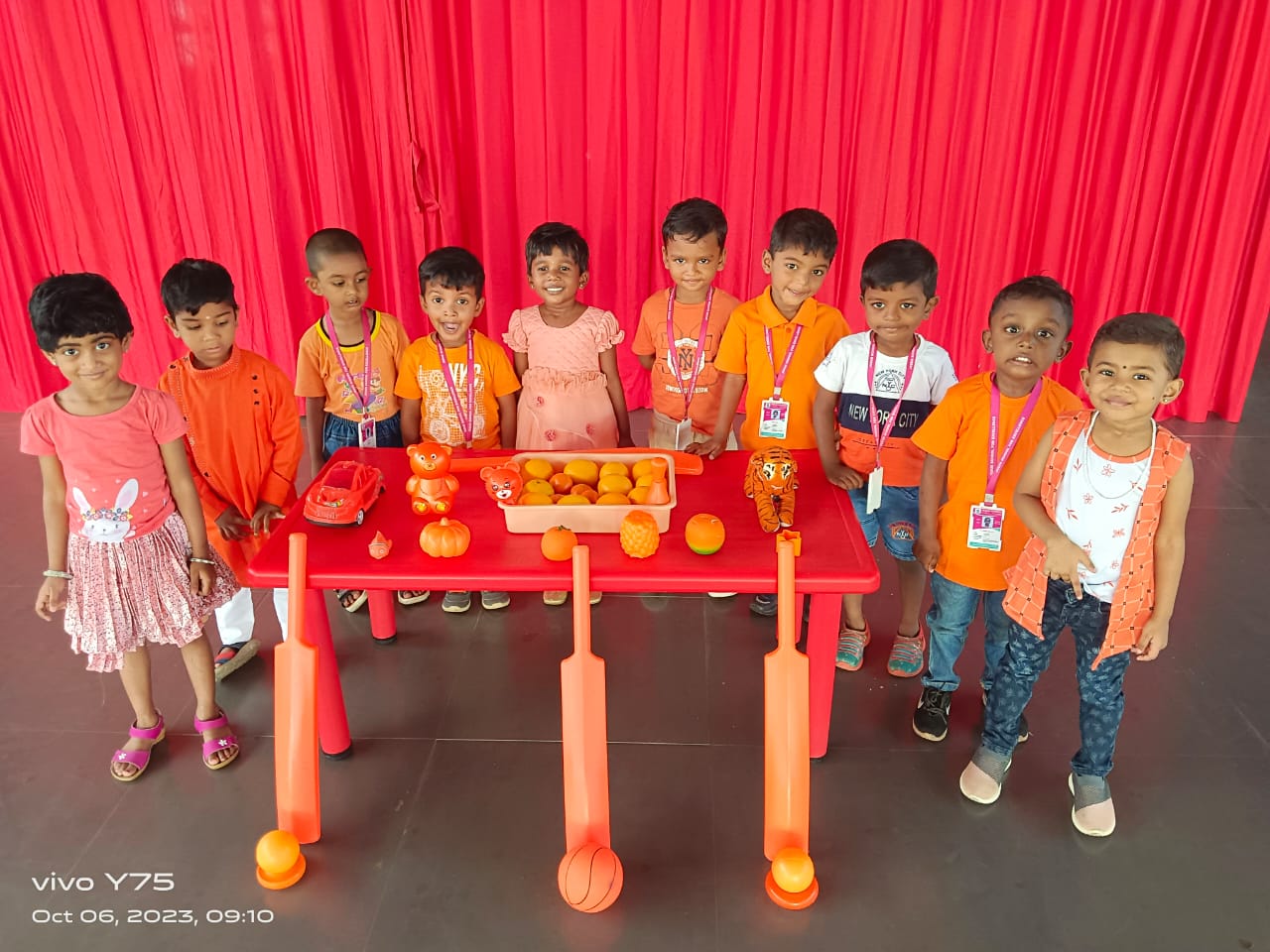 Orange can have a positive influence on moods, attitudes, and emotions. Orange can instantly brighten up a moment in whatever form it takes. Orange represents enthusiasm, joy, happiness, and playfulness. In addition, it also brings about feelings of warmth. On the day of celebration all our kids came in a orange dress and orange objects. They also enjoyed the day with orange juice. Photos ere taken to make the day a memorable one.